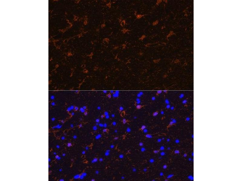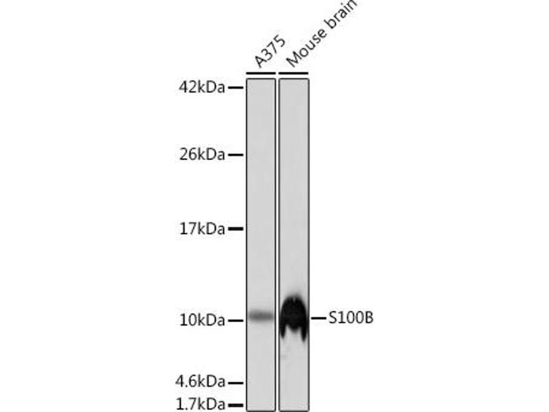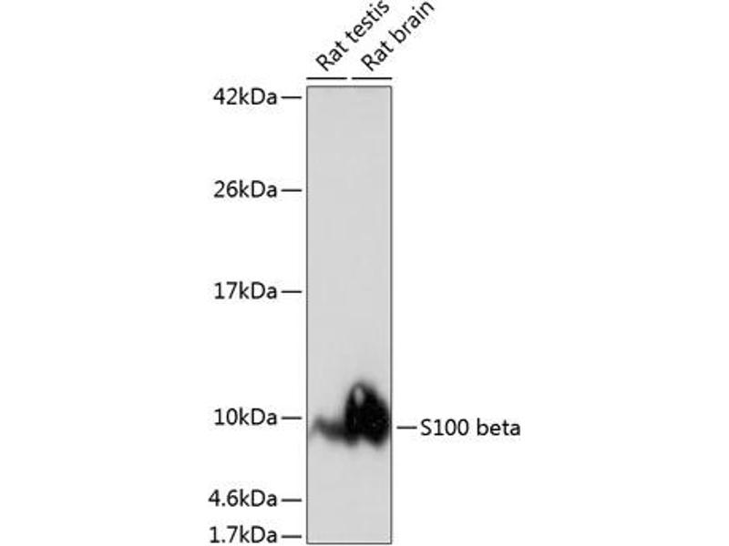The protein encoded by this gene is a member of the S100 family of proteins containing 2 EF-hand calcium-binding motifs. S100 proteins are localized in the cytoplasm and/or nucleus of a wide range of cells, and involved in the regulation of a number of cellular processes such as cell cycle progression and differentiation. S100 genes include at least 13 members which are located as a cluster on chromosome 1q21; however, this gene is located at 21q22.3. This protein may function in Neurite extension, proliferation of melanoma cells, stimulation of Ca2+ fluxes, inhibition of PKC-mediated phosphorylation, astrocytosis and axonal proliferation, and inhibition of microtubule assembly. Chromosomal rearrangements and altered expression of this gene have been implicated in several neurological, neoplastic, and other types of diseases, including Alzheimer's disease, Down's syndrome, epilepsy, amyotrophic lateral sclerosis, melanoma, and type I diabetes. [provided by RefSeq, Jul 2008],NEF;S100;S100-B;S100beta;S100B;S100 beta,Apoptosis,Cell Biology & Developmental Biology,Cell Cycle,Cell Cycle_Cell differentiation,Cell Type Marker,Epigenetics & Nuclear Signaling,Neural Stem Cells,Neuroscience,Stem Cells,S100B