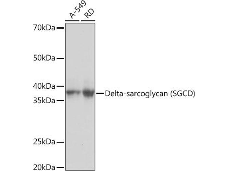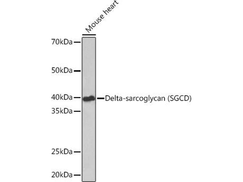 The protein encoded by this gene is one of the four known components of the sarcoglycan complex, which is a subcomplex of the dystrophin-glycoprotein complex (DGC). DGC forms a link between the F-actin cytoskeleton and the extracellular matrix. This protein is expressed most abundantly in skeletal and cardiac muscle. Mutations in this gene have been associated with autosomal recessive limb-girdle muscular dystrophy and dilated cardiomyopathy. Alternatively spliced transcript variants encoding distinct isoforms have been observed for this gene. [provided by RefSeq, Jul 2008],35DAG, CMD1L, DAGD, SG-delta, SGCDP, SGD,Cell Biology & Developmental Biology,Cytoskeleton,Extracellular Matrix,Signal Transduction,SGCD