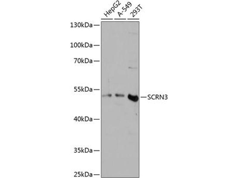- Recombinant fusion protein containing a sequence corresponding to amino acids 100-410 of human SCRN3 (NP_078859.2).