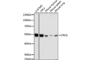 The product of this gene is a member of the GCK group III family of kinases, which are a subset of the Ste20-like kinases. The encoded protein contains an amino-terminal kinase domain, and a carboxy-terminal regulatory domain that mediates homodimerization. The protein kinase localizes to the Golgi apparatus and is specifically activated by binding to the Golgi matrix protein GM130. It is also cleaved by caspase-3 in vitro, and may function in the apoptotic pathway. Several alternatively spliced transcript variants of this gene have been described, but the full-length nature of some of these variants has not been determined.,STK26,MASK,MST4,Signal Transduction,Kinase,Tyrosine kinases,Cell Biology & Developmental Biology,Apoptosis,STK26