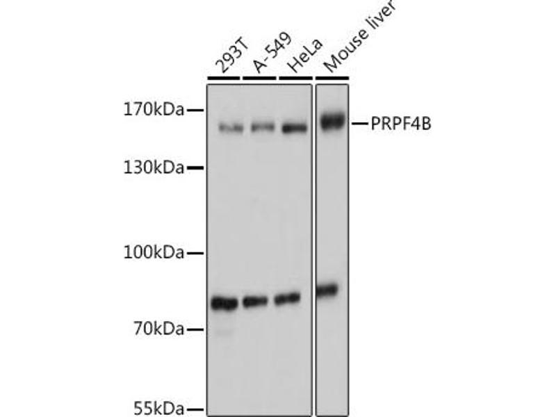 The Rabbit Polyclonal anti-PRPF4B antibody has been validated for WB. It is suitable to detect PRPF4B in samples from Human.