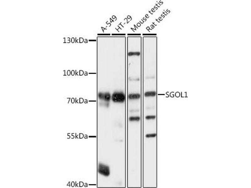 The protein encoded by this gene is a member of the shugoshin family of proteins. This protein is thought to protect centromeric cohesin from cleavage during mitotic prophase by preventing phosphorylation of a cohesin subunit. Reduced expression of this gene leads to the premature loss of centromeric cohesion, mis-segregation of sister chromatids, and mitotic arrest. Evidence suggests that this protein also protects a small subset of cohesin found along the length of the chromosome arms during mitotic prophase. An isoform lacking exon 6 has been shown to play a role in the cohesion of centrioles (PMID: 16582621 and PMID:18331714). Mutations in this gene have been associated with Chronic Atrial and Intestinal Dysrhythmia (CAID) syndrome, characterized by the co-occurrence of Sick Sinus Syndrome (SSS) and Chronic Intestinal Pseudo-obstruction (CIPO) within the first four decades of life (PMID:25282101). Fibroblast cells from CAID patients exhibited both increased cell proliferation and higher rates of senescence. Pseudogenes of this gene have been found on chromosomes 1 and 7. Alternative splicing results in multiple transcript variants.,SGO1,CAID,NY-BR-85,SGO,SGOL1,Epigenetics & Nuclear Signaling,Cell Biology & Developmental Biology,Cell Cycle,Centromere,SGOL1