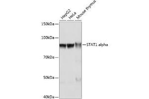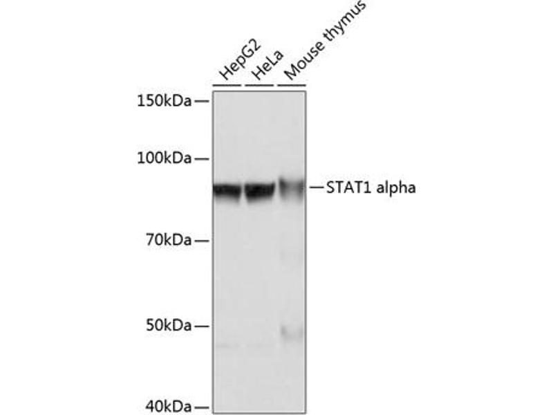 The protein encoded by this gene is a member of the STAT protein family. In response to cytokines and growth factors, STAT family members are phosphorylated by the receptor associated kinases, and then form homo- or heterodimers that translocate to the cell nucleus where they act as transcription activators. This protein can be activated by various ligands including interferon-alpha, interferon-gamma, EGF, PDGF and IL6. This protein mediates the expression of a variety of genes, which is thought to be important for cell viability in response to different cell stimuli and pathogens. Two alternatively spliced transcript variants encoding distinct isoforms have been described. [provided by RefSeq, Jul 2008],CANDF7,IMD31A,IMD31B,IMD31C,ISGF-3,STAT91,STAT1 alpha,STAT1,Apoptosis,Apoptosis_Inhibition of Apoptosis,Cancer,Cell Biology & Developmental Biology,Epigenetics & Nuclear Signaling,ErbB-HER Signaling Pathway,IL-6 Receptor Signaling Pathway,Immunology & Inflammation,MAPK-Erk Signaling Pathway,MAPK-P38 Signaling Pathway,Protein phosphorylation,Signal Transduction,Transcription Factors,STAT1