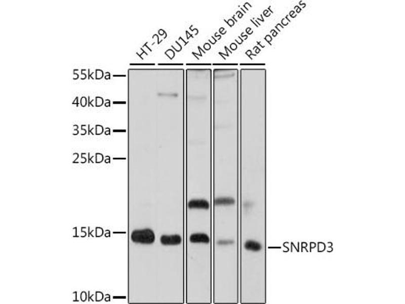 The Rabbit Polyclonal anti-SNRPD3 antibody has been validated for WB and IF. It is suitable to detect SNRPD3 in samples from Human.