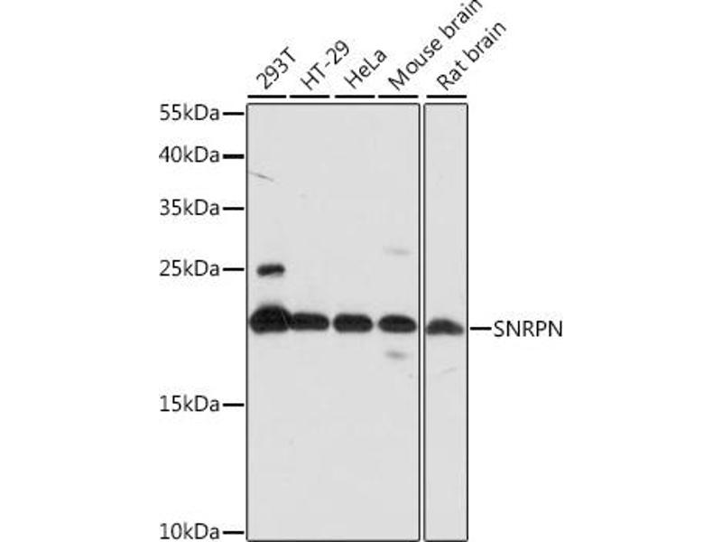 - A synthetic peptide corresponding to a sequence within amino acids 1-100 of human SNRPN (NP_003088.1).