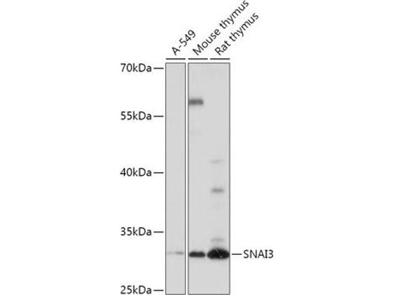 SNAI3 is a member of the SNAIL gene family, named for the Drosophila snail gene, which plays roles in mesodermal formation during embryogenesis (Katoh and Katoh, 2003 [PubMed 12579345]).[supplied by OMIM, Apr 2009],SMUC,SNAIL3,ZNF293,Zfp293,SNAI3,Epigenetics & Nuclear Signaling,Transcription Factors,SNAI3