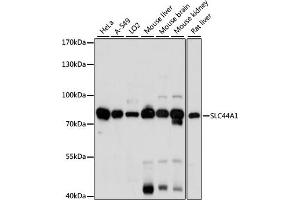 The Rabbit Polyclonal anti-SLC44A1 antibody has been validated for WB. It is suitable to detect SLC44A1 in samples from Human.