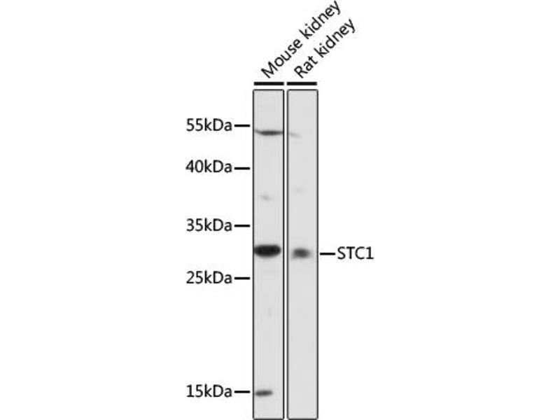 This gene encodes a secreted, homodimeric glycoprotein that is expressed in a wide variety of tissues and may have autocrine or paracrine functions. The gene contains a 5' UTR rich in CAG trinucleotide repeats. The encoded protein contains 11 conserved cysteine residues and is phosphorylated by protein kinase C exclusively on its serine residues. The protein may play a role in the regulation of renal and intestinal calcium and phosphate transport, cell metabolism, or cellular calcium/phosphate homeostasis. Overexpression of human stanniocalcin 1 in mice produces high serum phosphate levels, dwarfism, and increased metabolic rate. This gene has altered expression in hepatocellular, ovarian, and breast cancers.,STC1;STC,Cancer,Signal Transduction,Cell Biology & Developmental Biology,Growth factor,Endocrine & Metabolism,STC1