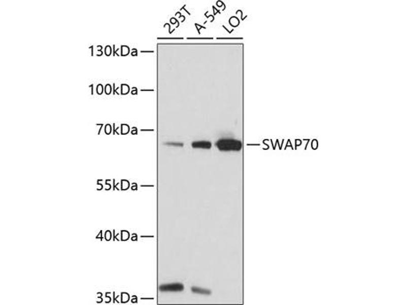 Phosphatidylinositol 3,4,5-trisphosphate-dependent guanine nucleotide exchange factor (GEF which, independently of RAS, transduces signals from tyrosine kinase receptors to RAC. It also mediates signaling of membrane ruffling. Regulates the actin cytoskeleton as an effector or adapter protein in response to agonist stimulated phosphatidylinositol (3,4-bisphosphate production and cell protrusion (By similarity.,SWAP70,HSPC321,SWAP-70,Signal Transduction,Immunology & Inflammation,Neuroscience,Calcium Signaling,SWAP70