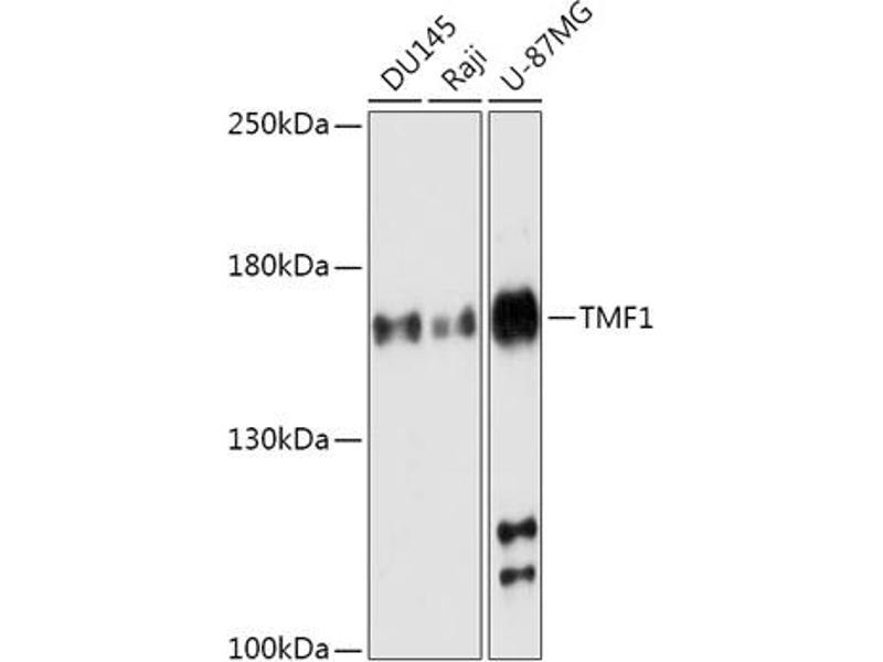 Potential coactivator of the androgen receptor. Mediates STAT3 degradation. May play critical roles in two RAB6-dependent retrograde transport processes: one from endosomes to the Golgi and the other from the Golgi to the ER. This protein binds the HIV-1 TATA element and inhibits transcriptional activation by the TATA-binding protein (TBP.,ARA160,TMF,TMF1,Epigenetics & Nuclear Signaling,Nuclear Receptor Signaling,Nuclear hormone receptors,Signal Transduction,TMF1