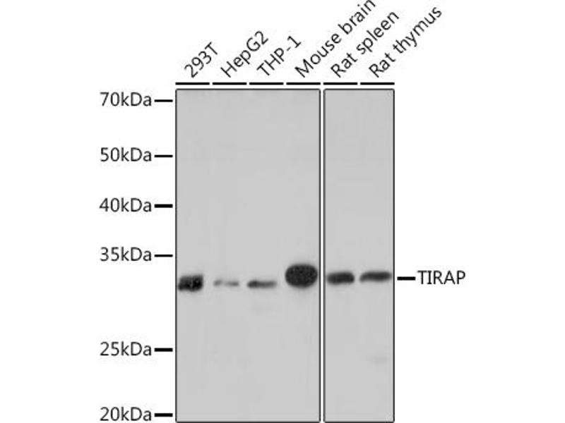 The innate immune system recognizes microbial pathogens through Toll-like receptors (TLRs), which identify pathogen-associated molecular patterns. Different TLRs recognize different pathogen-associated molecular patterns and all TLRs have a Toll-interleukin 1 receptor (TIR) domain, which is responsible for signal transduction. The protein encoded by this gene is a TIR adaptor protein involved in the TLR4 signaling pathway of the immune system. It activates NF-kappa-B, MAPK1, MAPK3 and JNK, which then results in cytokine secretion and the inflammatory response. Alternative splicing of this gene results in several transcript variants, however, not all variants have been fully described. [provided by RefSeq, Jul 2008],BACTS1, Mal, MyD88-2, wyatt,Cardiovascular,Cell Intrinsic Innate Immunity Signaling Pathway,Immunology & Inflammation,Innate Immunity_TLR Signaling,Kinase,Toll-like Receptor Signaling Pathway,TIRAP