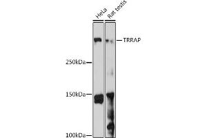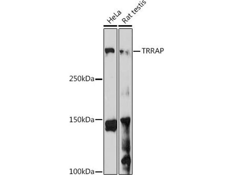 This gene encodes a large multidomain protein of the phosphoinositide 3-kinase-related kinases (PIKK) family. The encoded protein is a common component of many histone acetyltransferase (HAT) complexes and plays a role in transcription and DNA repair by recruiting HAT complexes to chromatin. Deregulation of this gene may play a role in several types of cancer including glioblastoma multiforme. Alternatively spliced transcript variants encoding multiple isoforms have been observed for this gene. [provided by RefSeq, Sep 2011],PAF350/400, PAF400, STAF40, TR-AP, Tra1,TRRAP