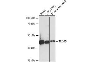 The protein encoded by this gene is a member of the tripartite motif (TRIM) family. The TRIM motif includes three zinc-binding domains, a RING, a B-box type 1 and a B-box type 2, and a coiled-coil region. The protein forms homo-oligomers via the coilel-coil region and localizes to cytoplasmic bodies. It appears to function as a E3 ubiquitin-ligase and ubiqutinates itself to regulate its subcellular localization. It may play a role in retroviral restriction. Multiple alternatively spliced transcript variants encoding different isoforms have been described for this gene.,TRIM5,RNF88,TRIM5alpha,Epigenetics & Nuclear Signaling,Cell Biology & Developmental Biology,Cell Cycle,Ubiquitin,Immunology & Inflammation,TRIM5