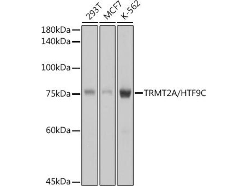 The protein encoded by this gene is of unknown function. However, it is orthologous to the mouse Trmt2a gene and contains an RNA methyltransferase domain. Expression of this gene varies during the cell cycle, with aberrant expression being a possible biomarker in certain breast cancers. Several transcript variants encoding two different isoforms have been found for this gene.,TRMT2A, HTF9C, tRNA methyltransferase 2 homolog A,Epigenetics & Nuclear Signaling,RNA Binding,Cancer,Tumor biomarkers,HTF9C