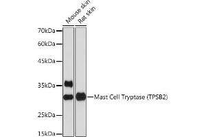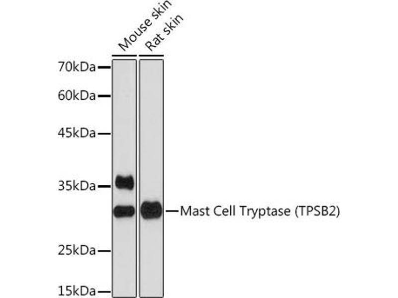 Tryptases comprise a family of trypsin-like serine proteases, the peptidase family S1. Tryptases are enzymatically active only as heparin-stabilized tetramers, and they are resistant to all known endogenous proteinase inhibitors. Several tryptase genes are clustered on chromosome 16p13.3. These genes are characterized by several distinct features. They have a highly conserved 3' UTR and contain tandem repeat sequences at the 5' flank and 3' UTR which are thought to play a role in regulation of the mRNA stability. These genes have an intron immediately upstream of the initiator Met codon, which separates the site of transcription initiation from protein coding sequence. This feature is characteristic of tryptases but is unusual in other genes. The alleles of this gene exhibit an unusual amount of sequence variation, such that the alleles were once thought to represent two separate genes, beta II and beta III. Beta tryptases appear to be the main isoenzymes expressed in mast cells, whereas in basophils, alpha-tryptases predominate. Tryptases have been implicated as mediators in the pathogenesis of asthma and other allergic and inflammatory disorders. [provided by RefSeq, Jul 2008],TPS2, tryptaseB, tryptaseC,Cell Biology & Developmental Biology,Cell Intrinsic Innate Immunity Signaling Pathway,Immunology & Inflammation,Ubiquitin,TPSB2