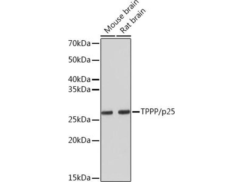 Regulator of microtubule dynamics that plays a key role in myelination by promoting elongation of the myelin sheath. Acts as a microtubule nucleation factor in oligodendrocytes: specifically localizes to the postsynaptic Golgi apparatus region, also named Golgi outpost, and promotes microtubule nucleation, an important step for elongation of the myelin sheath. Required for both uniform polarized growth of distal microtubules as well as directing the branching of proximal processes. Shows magnesium-dependent GTPase activity, the role of the GTPase activity is unclear. In addition to microtubule nucleation activity, also involved in microtubule bundling and stabilization of existing microtubules, thereby maintaining the integrity of the microtubule network. Regulates microtubule dynamics by promoting tubulin acetylation: acts by inhibiting the tubulin deacetylase activity of HDAC6. Also regulates cell migration: phosphorylation by ROCK1 inhibits interaction with HDAC6, resulting in decreased acetylation of tubulin and increased cell motility. Plays a role in cell proliferation by regulating the G1/S-phase transition. Involved in astral microtubule organization and mitotic spindle orientation during early stage of mitosis, this process is regulated by phosphorylation by LIMK2.,TPPP/p25, TPPP1, p24, p25, p25alpha,Cell Biology & Developmental Biology,Cytoskeleton,Cytoskeleton_Microtubules,Signal Transduction,TPPP