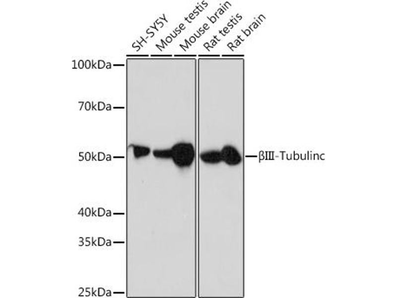 This gene encodes a class III member of the beta tubulin protein family. Beta tubulins are one of two core protein families (alpha and beta tubulins) that heterodimerize and assemble to form microtubules. This protein is primarily expressed in neurons and may be involved in neurogenesis and axon guidance and maintenance. Mutations in this gene are the cause of congenital fibrosis of the extraocular muscles type 3. Alternate splicing results in multiple transcript variants. A pseudogene of this gene is found on chromosome 6. [provided by RefSeq, Oct 2010],CDCBM,CDCBM1,CFEOM3,CFEOM3A,FEOM3,TUBB4,beta-4,beta Tubulin III,TUBB3,Cell Biology & Developmental Biology,Cell Cycle,Cell Cycle_Centrosome,Cell Type Marker,Cell Type Marker_Neuron marker,Cytoskeleton,Cytoskeleton_Microtubules,Neuroscience,Signal Transduction,TUBB3