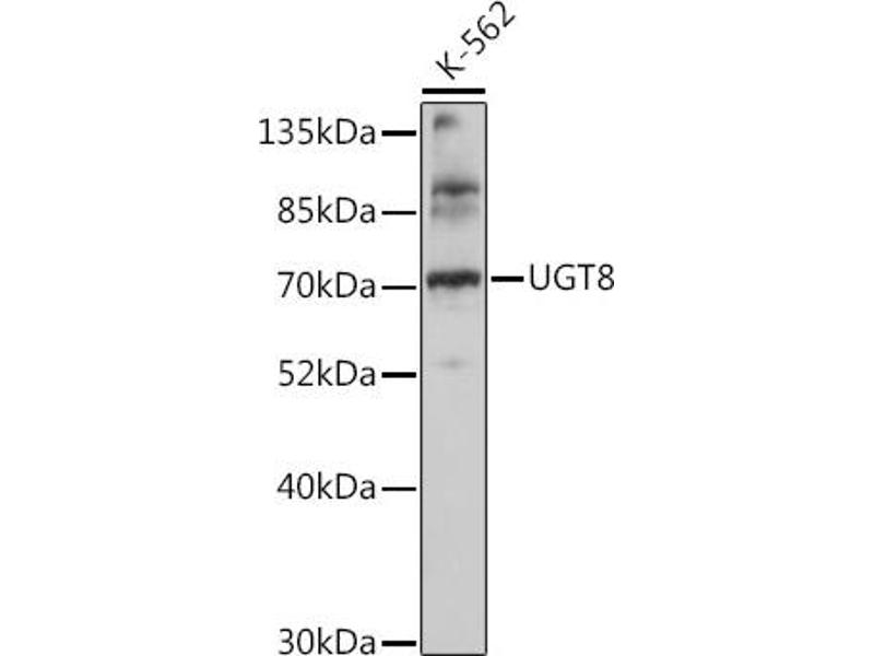 - The protein encoded by this gene belongs to the UDP-glycosyltransferase family. It catalyzes the transfer of galactose to ceramide, a key enzymatic step in the biosynthesis of galactocerebrosides, which are abundant sphingolipids of the myelin membrane of the central and peripheral nervous systems. Alternatively spliced transcript variants have been found for this gene.,UGT8,CGT,UGT4,Cancer,Signal Transduction,Cell Biology & Developmental Biology,Endocrine & Metabolism,Lipid Metabolism,UGT8