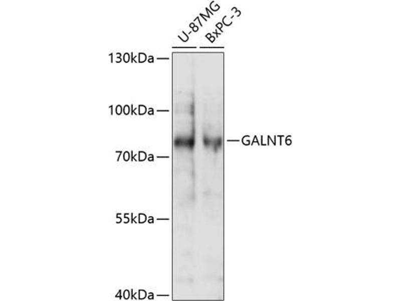 This gene encodes a member of the UDP-N-acetyl-alpha-D-galactosamine:polypeptide N-acetylgalactosaminyltransferase (GalNAc-T) family of enzymes. GalNAc-Ts initiate mucin-type O-linked glycosylation in the Golgi apparatus by catalyzing the transfer of GalNAc to serine and threonine residues on target proteins. They are characterized by an N-terminal transmembrane domain, a stem region, a lumenal catalytic domain containing a GT1 motif and Gal/GalNAc transferase motif, and a C-terminal ricin/lectin-like domain. GalNAc-Ts have different, but overlapping, substrate specificities and patterns of expression. The encoded protein is capable of glycosylating fibronectin peptide in vitro and is expressed in a fibroblast cell line, indicating that it may be involved in the synthesis of oncofetal fibronectin.,GALNT6,GALNAC-T6,GalNAcT6,GALNT6