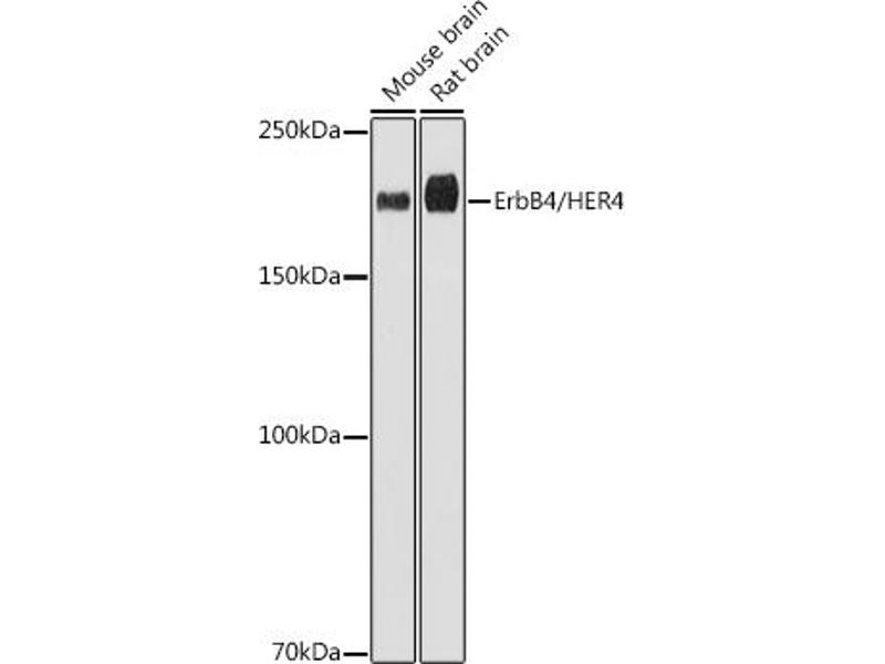 This gene is a member of the Tyr protein kinase family and the epidermal growth factor receptor subfamily. It encodes a single-pass type I membrane protein with multiple cysteine rich domains, a transmembrane domain, a tyrosine kinase domain, a phosphotidylinositol-3 kinase binding site and a PDZ domain binding motif. The protein binds to and is activated by neuregulins and other factors and induces a variety of cellular responses including mitogenesis and differentiation. Multiple proteolytic events allow for the release of a cytoplasmic fragment and an extracellular fragment. Mutations in this gene have been associated with cancer. Alternatively spliced variants which encode different protein isoforms have been described, however, not all variants have been fully characterized. [provided by RefSeq, Jul 2008],ALS19,HER4,p180erbB4,ERBB4,HER4/ErbB4,Cancer,Cell Biology & Developmental Biology,ErbB-HER Signaling Pathway,Growth factors,Growth factors_EGF,Immunology & Inflammation,Kinase,Kinase_Tyrosine kinases,Protein phosphorylation,Signal Transduction,Tumor biomarkers,ERBB4