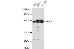 VAV2 is the second member of the VAV guanine nucleotide exchange factor family of oncogenes. Unlike VAV1, which is expressed exclusively in hematopoietic cells, VAV2 transcripts were found in most tissues. Alternatively spliced transcript variants encoding different isoforms have been found for this gene. [provided by RefSeq, Aug 2008],VAV-2,B Cell Receptor Signaling Pathway,Cancer,Cell Biology & Developmental Biology,Cytoskeleton,Cytoskeleton_Actins,Epigenetics & Nuclear Signaling,G protein signaling,G protein signaling_Small G proteins,Immunology & Inflammation,Signal Transduction,T Cell Receptor Signaling Pathway,VAV2
