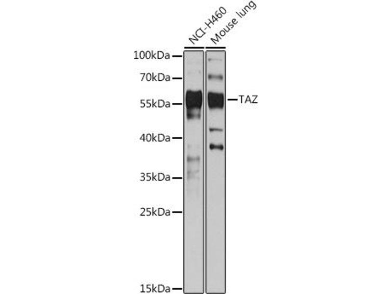 Transcriptional coactivator which acts as a downstream regulatory target in the Hippo signaling pathway that plays a pivotal role in organ size control and tumor suppression by restricting proliferation and promoting apoptosis. The core of this pathway is composed of a kinase cascade wherein STK3/MST2 and STK4/MST1, in complex with its regulatory protein SAV1, phosphorylates and activates LATS1/2 in complex with its regulatory protein MOB1, which in turn phosphorylates and inactivates YAP1 oncoprotein and WWTR1/TAZ. WWTR1 enhances PAX8 and NKX2-1/TTF1-dependent gene activation. In conjunction with YAP1, involved in the regulation of TGFB1-dependent SMAD2 and SMAD3 nuclear accumulation. Plays a key role in coupling SMADs to the transcriptional machinery such as the mediator complex. Regulates embryonic stem-cell self-renewal, promotes cell proliferation and epithelial-mesenchymal transition.,WW domain-containing transcription regulator protein 1,Transcriptional coactivator with PDZ-binding motif,TAZ,WWTR1,Epigenetics & Nuclear Signaling,Cell Biology & Developmental Biology,Hippo Signaling Pathway,Stem Cells,Mesenchymal Stem Cells,WWTR1
