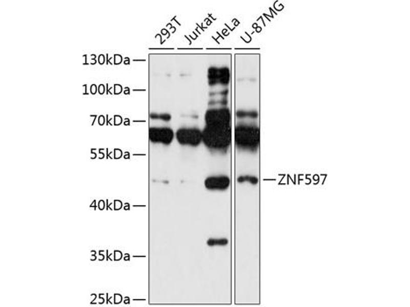 This gene encodes a protein with multiple zinc finger domains. Loss of the related gene in rodents results in defects in neural development and embryonic lethality in mutant homozygotes. This gene is adjacent to a differentially methylated region (DMR) and is imprinted and maternally expressed.,ZNF597,HIT-4,Epigenetics & Nuclear Signaling,Transcription Factors,ZNF597