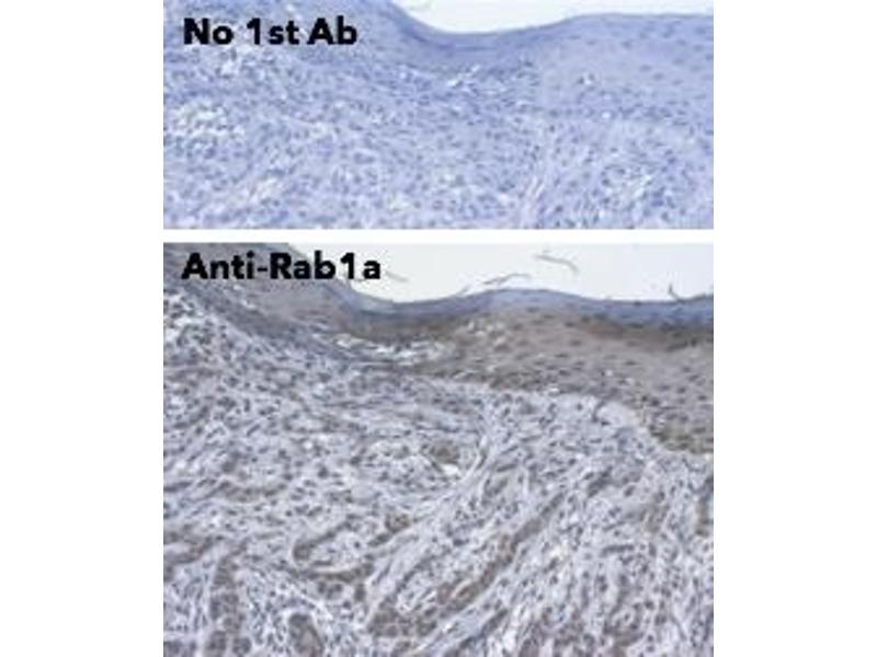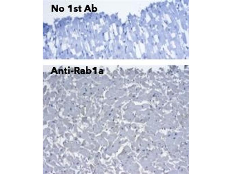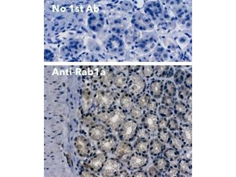 Detects endogenous levels of Rab1a (HUH, LS174T, MDA-MB-435, MCF7, Cos7, MCR, AtT20, IMCD3, HeLa, MDCK) by Western blot. This antibody does not cross-react with Rab1b.
