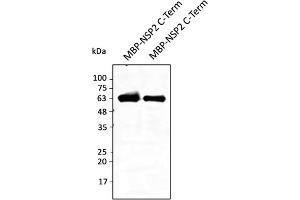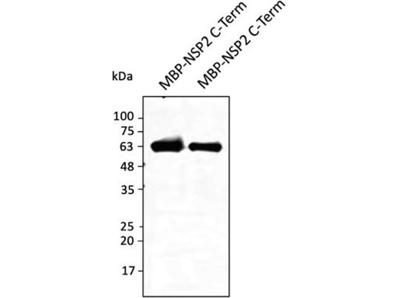 - Affinity purified recombinant fusion protein using the C-terminal of Nsp2 (residues 480 to stop) and produced in E. coli.