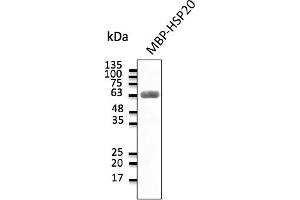 - Affinity purified recombinant fusion protein HSP20 from Plasmodium and produced in E. coli.