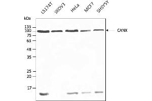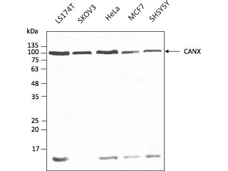 - Purified recombinant peptide within residues 550 aa to the C-terminus of human CANX produced in E. coli.