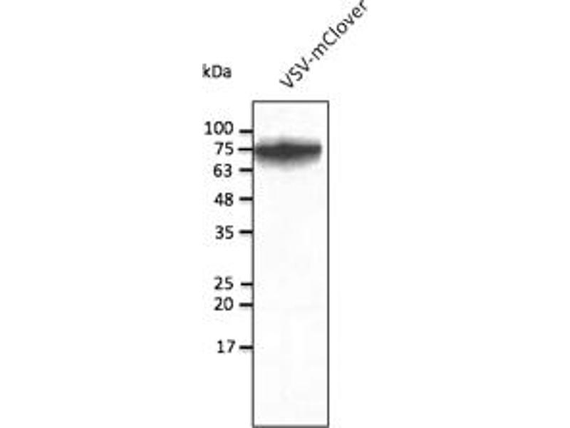 Goat polyclonal antibody to mClover (Clover fluorescent protein). mClover is a basic (constitutively fluorescent), monomeric engineered derivate of green fluorescent protein (GFP) isolated from Aequorea victoria. mClover is a ~27 kDa protein that is optimally excited at a 506 nm and has a maximum of emission at 518 nm. It is used in research as a reporter to label and study the biology of the cell using a wide range of applications.