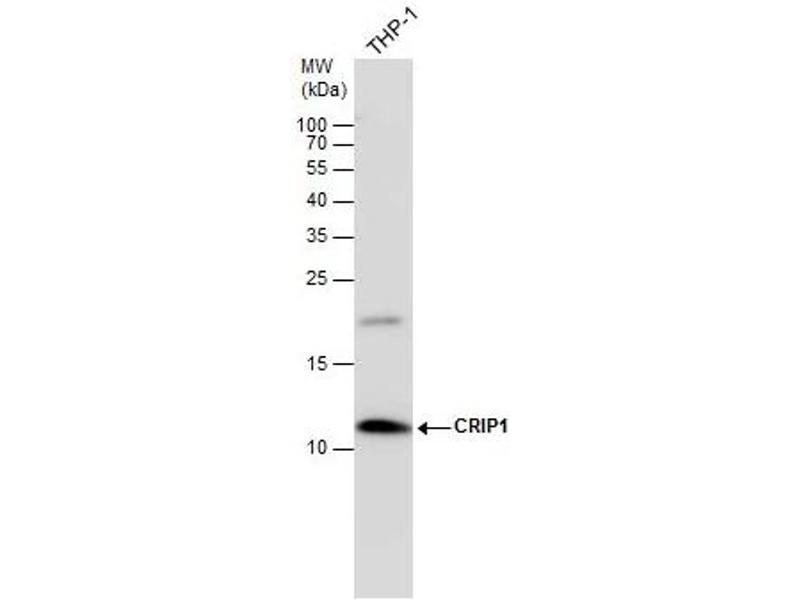 - Carrier-protein conjugated synthetic peptide encompassing a sequence within the C-terminus region of human CRIP1. The exact sequence is proprietary.