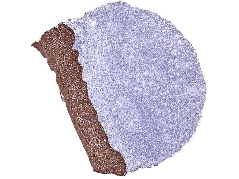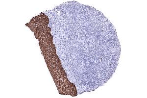 Negative Control: Tonsil: All lymphocytes must not stain. However, interstitial reticulum cells with dendritic/reticular pattern show a weak to moderate fibrillar staining.