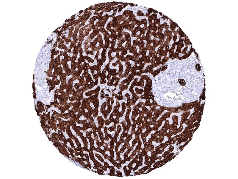 Positive Control: Liver: A strong staining of all bile duct epithelial cells and an at least moderate, predominantly membranous staining of most hepatocytes should be seen.