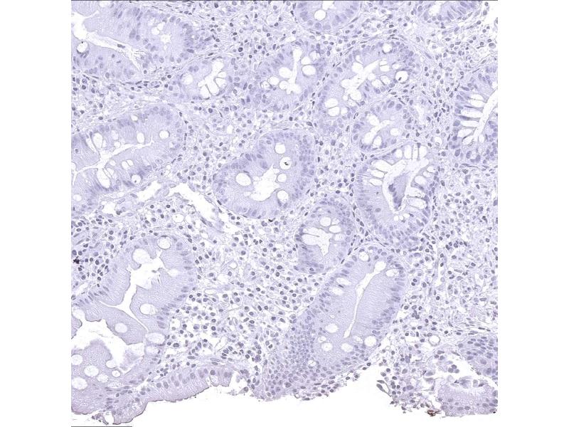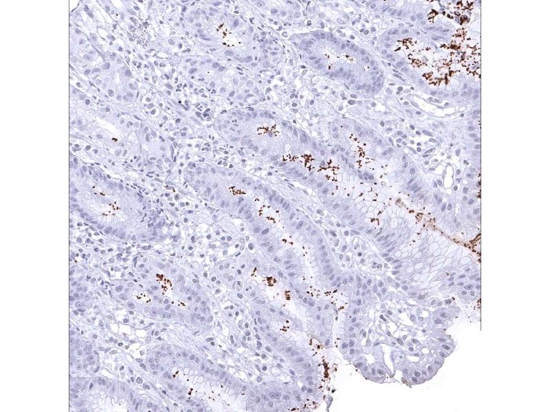 Negative Control: Gastric tissue: Normal epithelial and stromal cells should not stain.