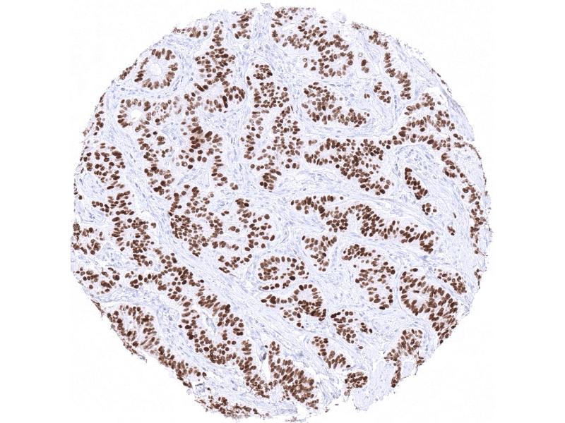 - Freshly cut sections should be used (less than 10 days between cutting and staining). Heat-induced antigen retrieval for 5 minutes in an autoclave at 121 °C in pH 7,8 Target Retrieval Solution buffer. Apply the antibody at a dilution of 1:100 at 37 °C for 60 minutes.