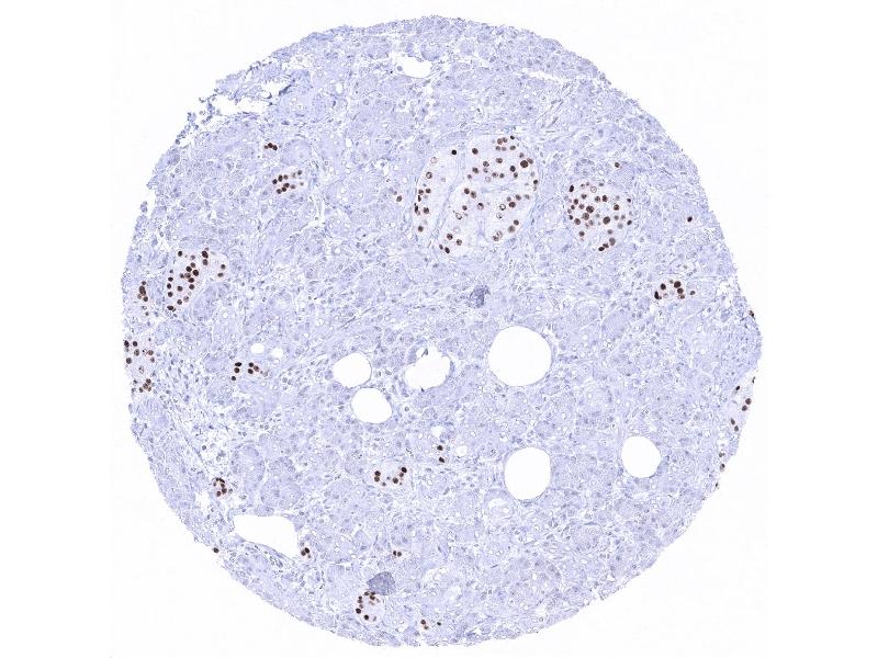 Positive Control: Pancreas: Islet cells should show a moderate to strong INSM1 immunostaining