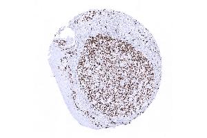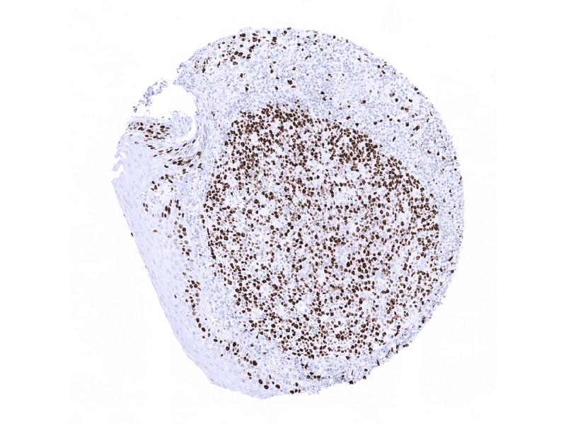 Positive Control: Tonsil (moderate to strong nuclear staining in 80-90% of the germinal centre B-cells and in the vast majority of the suprabasal squamous epithelial cells).