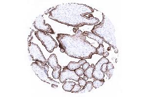 Positive Control: Alveolar macrophages, tonsil crypt epithelium and the placental cytotrophoblast show strong, predominantly membranous positivity. Follicle centre macrophages should show at least moderate intensity staining.
