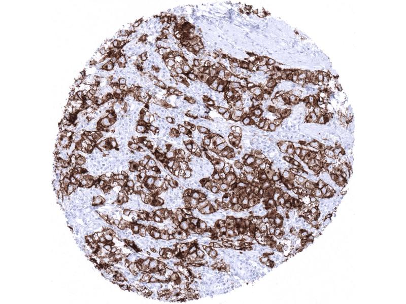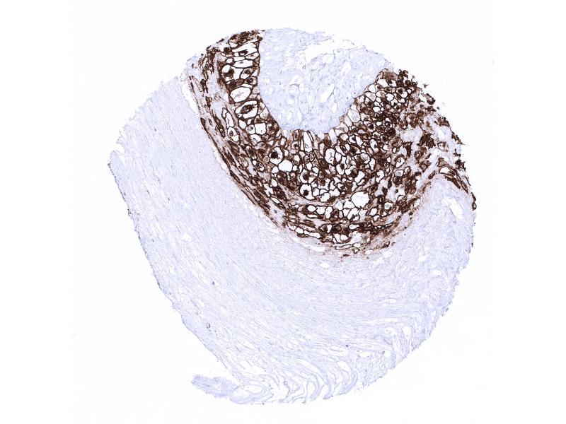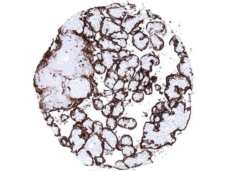 Positive Control: Placenta (mature): A strong membranous and cytoplasmic staining of cytotrophoblast and syncytiotrophoblast must be seen.