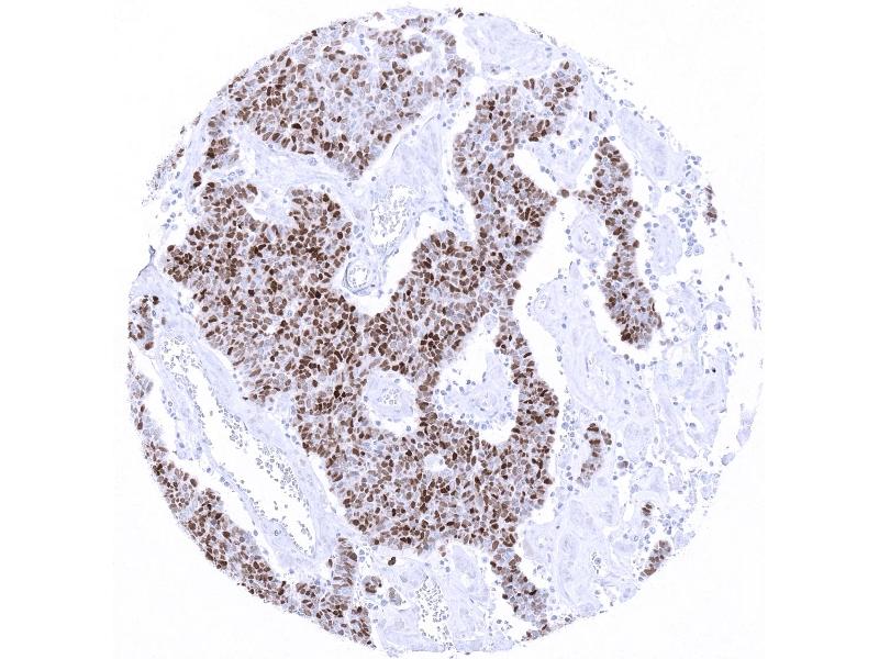 - Manual Protocol: Freshly cut sections should be used (less than 10 days between cutting and staining). Heat-induced antigen retrieval for 5 minutes in an autoclave at 121 °C in pH 7,8 Target Retrieval Solution buffer. Apply the antibody at a dilution of 1:100 at 37 °C for 60 minutes. Visualization of bound antibody by the EnVision Kit (Dako, Agilent) according to the manufacturer's directions.