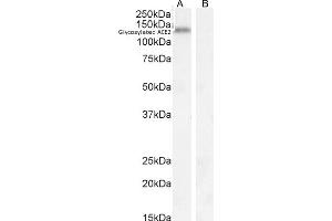 Western Blot: Approx 140 kDa band observed in Human Kidney lysates (calculated MW of 92.4 kDa according to NP_001358344.1).The observed molecular weight was successfully blocked by incubation with the immunising peptide, and represents glycosylateion of AC