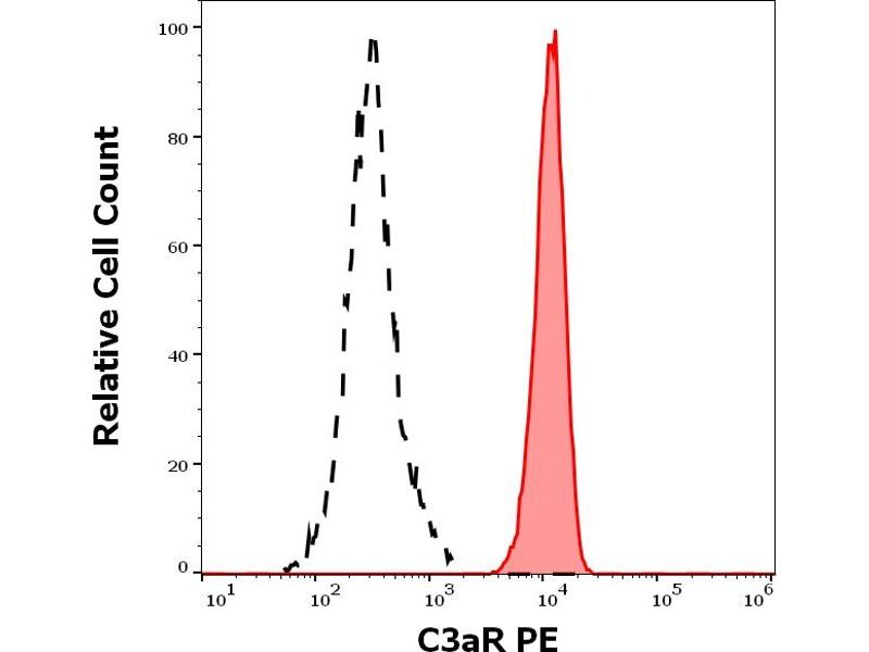 The mouse monoclonal antibody HC3aRZ8 recognizes an extracellular epitope of C3aR, a transmembrane chemotactic receptor for C3a anaphylatoxin.