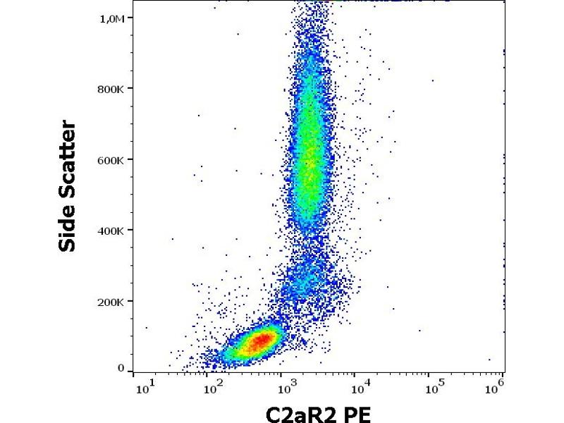 The mouse monoclonal antibody 1D9-M12 recognizes an extracellular epitope on C5aR2 (C5L2), a C5a complement receptor, which is coexpressed with C5aR1 (CD88) in neutrophils, as well as e.g. in mast cells, astrocytes, or macrophages.