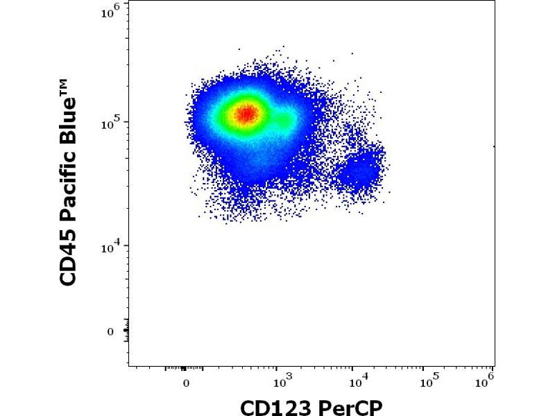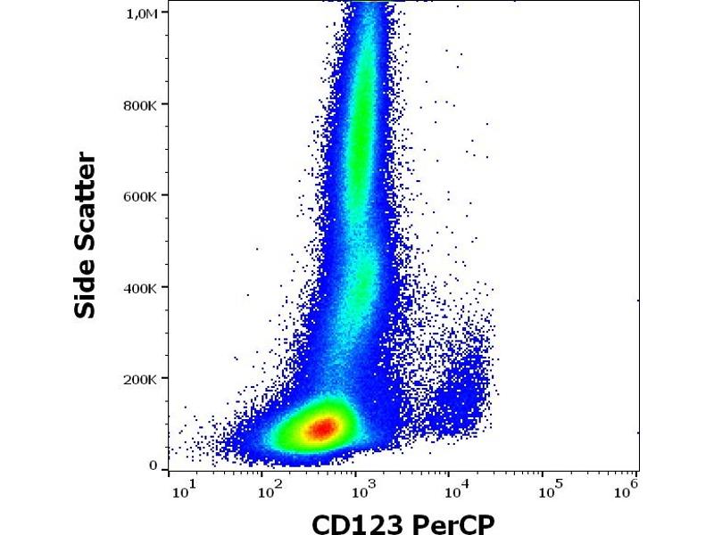 The mouse monoclonal antibody 6H6 recognizes an extracellular epitope of CD123 (interleukin 3 receptor alpha), a 60-70 kDa transmembrane protein expressed by myeloid precursors, megakaryocytes, macrophages, dendritic cells, mast cells, basophils, and some B cells. This antibody does not inhibit IL-3 binding to its receptor.