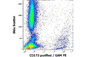 CD173 (blood group antigen H2) is a fucosylated saccharide (Fuc-alpha-1-2-Gal-beta-1-4-GlcNAc-beta) generated by beta-D-galactoside 2-alpha-L-fucosyltransferase (FUT1). CD173 belongs to markers of early hematopoiesis, it is expressed mainly on CD34-positive hematopoietic progenitor cells. CD173 is a precursor structure of CD174 (Lewis Y) and is also structurally related to CD15 (Lewis X). On endothelial cells CD173 and CD174 are concentrated on pseudopodial extensions responsible for initial contacts between endothelial cells.,Lewis Y, blood group H2 antigen, LeY