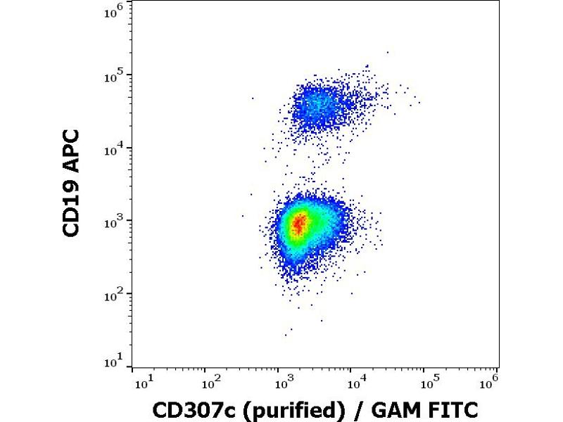 Fc receptor like 3,CD307c is a type I transmembrane glycoprotein of the Fc receptor family. It contains both ITAM and ITIM motifs in its cytoplasmic domain. CD307c is expressed on the surface of NK cells, and T, Treg, B and plasma cell subsets. It seems to play a role in the regulation of immune response. Defects in CD307c function can result in autoimmune diseases, e.g. rheumatoid arthritis or systemic lupus erythematosus.,FcRL3, IRTA3