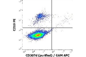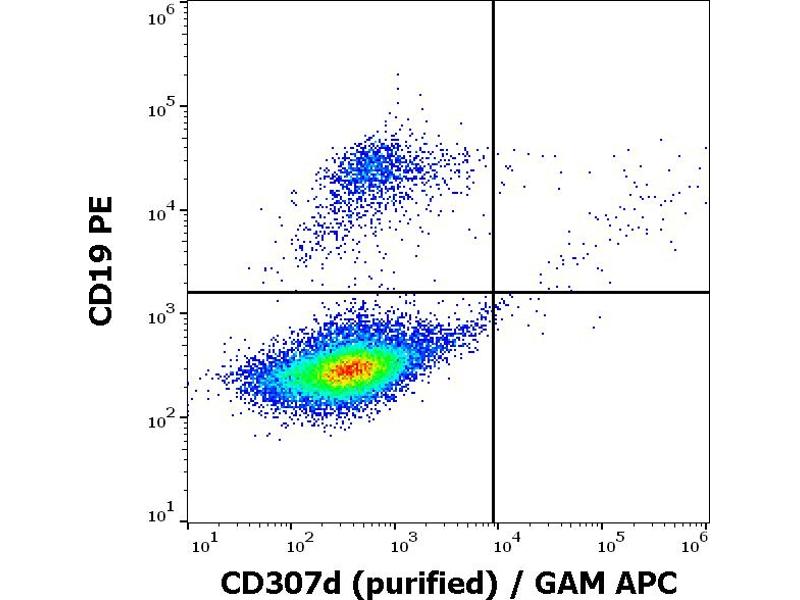 The mouse monoclonal antibody A1 recognizes an epitope within extracellular domain of CD307d, a transmembrane glycoprotein expressed mainly on memory B cells.