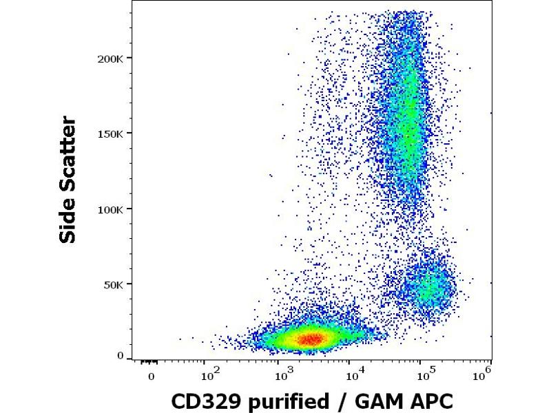 Sialic acid binding Ig like lectin 9,CD329 is a type I transmembrane glycoprotein of siglec family, which contains intracellular ITIM motif, and a SLAM-like motif, that acts as a docking site for SAP. CD329 can regulate TCR signaling by recruitment of SHP-1, which results in down-regulation of TCR-based gene transcription. It is expressed above all on monocytes, neutrophils, and a minor population of CD16+CD56- cells, weaker expression is detectable in some B cells, NK cells, and T cells.,SIGLEC9